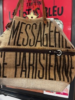 Ce cabas est fabriqué à partir d'une ancienne toile de jute des années 70 des Nouvelles messageries de la presse Parisienne, établissement qui diffusait auprès la presse aupres des distributeurs la presse